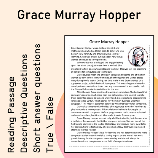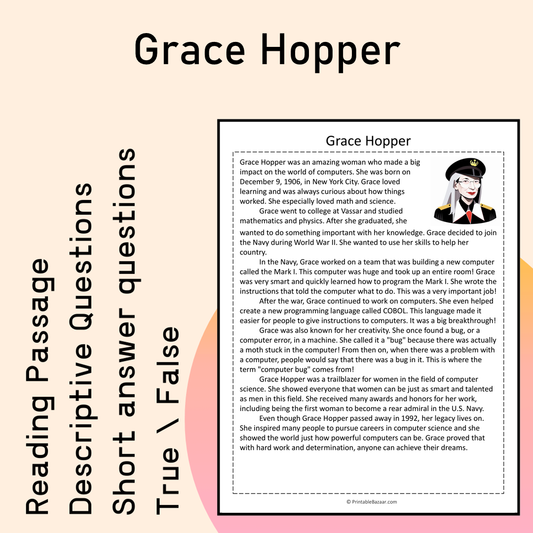 Grace Murray Hopper | Reading Comprehension Passage Printable Activity