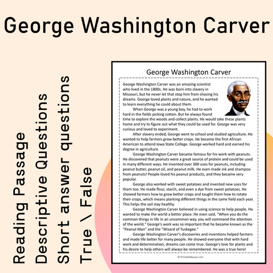 George Washington Carver | Reading Comprehension Passage Printable Activity