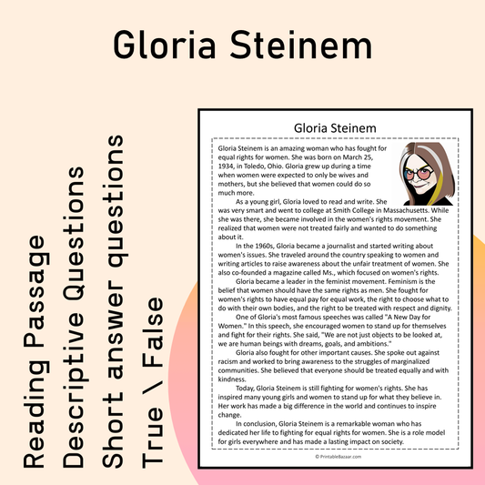 Gloria Steinem | Reading Comprehension Passage Printable Activity