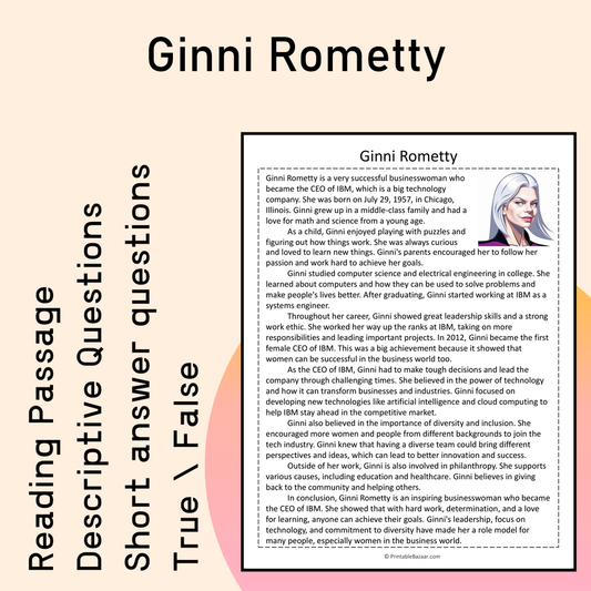 Ginni Rometty | Reading Comprehension Passage Printable Activity