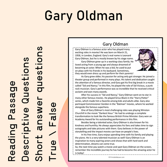 Gary Oldman | Reading Comprehension Passage Printable Activity