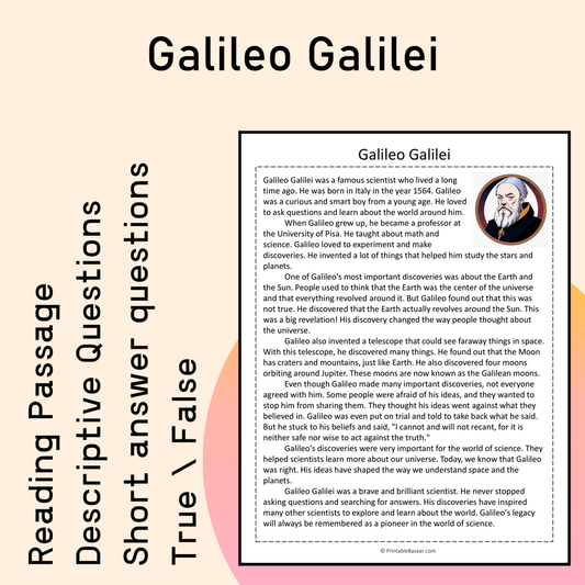 Galileo Galilei | Reading Comprehension Passage Printable Activity