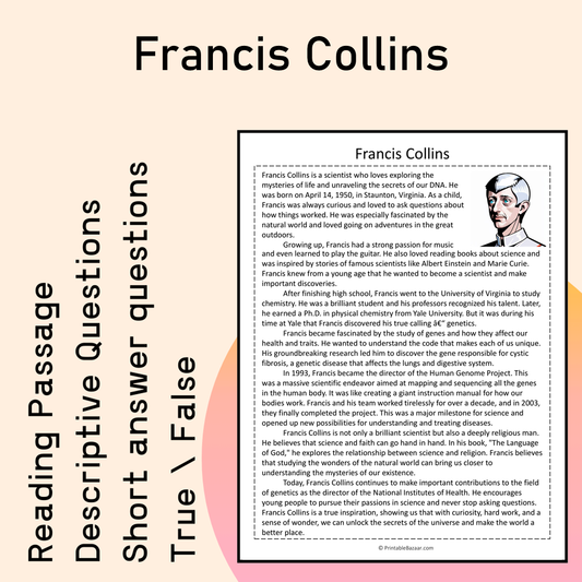 Francis Collins | Reading Comprehension Passage Printable Activity