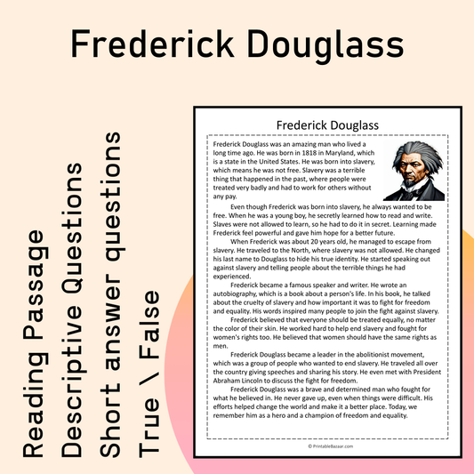 Frederick Douglass | Reading Comprehension Passage Printable Activity