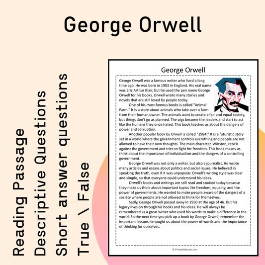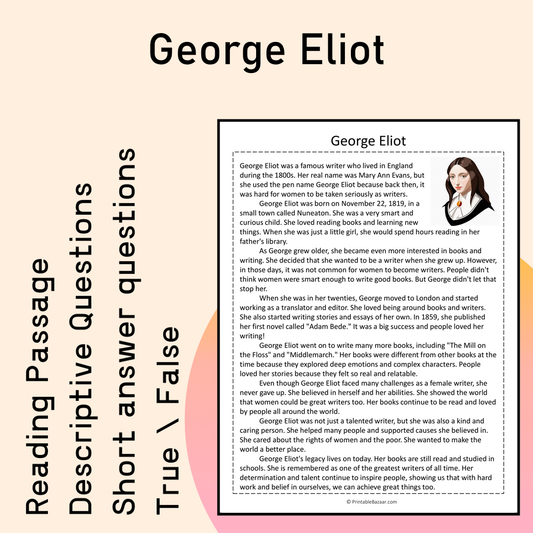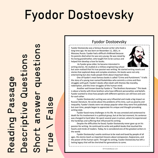 Fyodor Dostoevsky | Reading Comprehension Passage Printable Activity