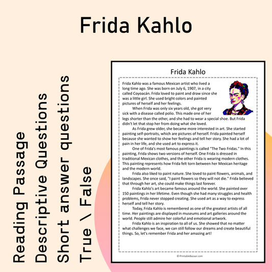 Frida Kahlo | Reading Comprehension Passage Printable Activity