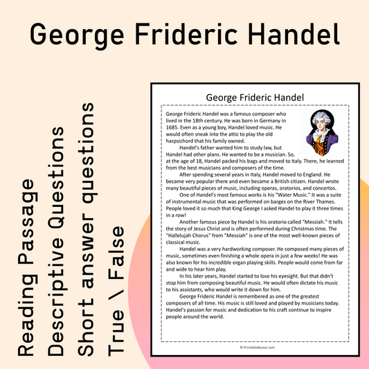 George Frideric Handel | Reading Comprehension Passage Printable Activity