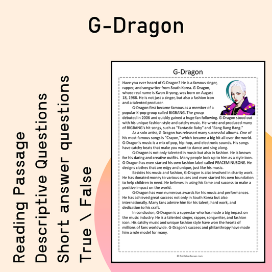 G-Dragon | Reading Comprehension Passage Printable Activity