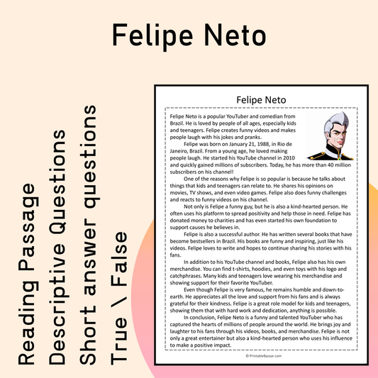 Felipe Neto | Reading Comprehension Passage Printable Activity