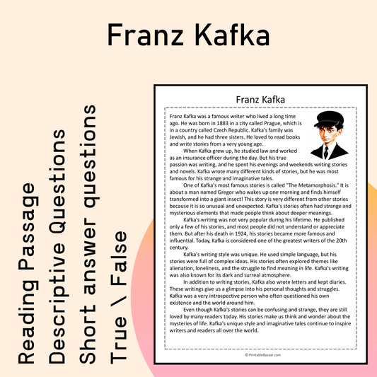 Franz Kafka | Reading Comprehension Passage Printable Activity
