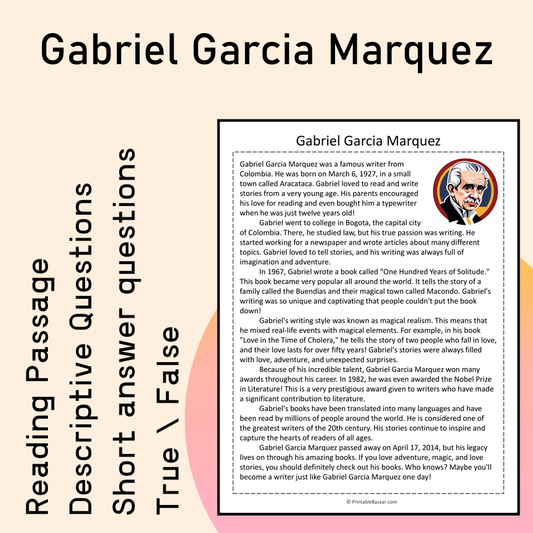Gabriel Garcia Marquez | Reading Comprehension Passage Printable Activity