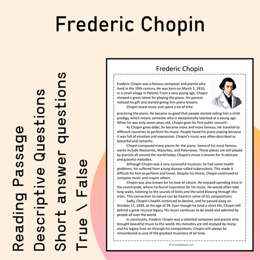 Frederic Chopin | Reading Comprehension Passage Printable Activity