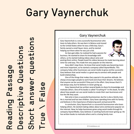Gary Vaynerchuk | Reading Comprehension Passage Printable Activity