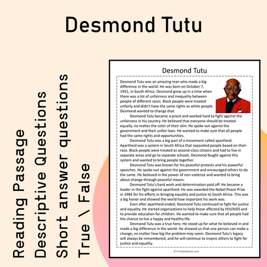 Desmond Tutu | Reading Comprehension Passage Printable Activity