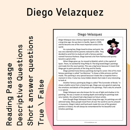 Diego Velazquez | Reading Comprehension Passage Printable Activity