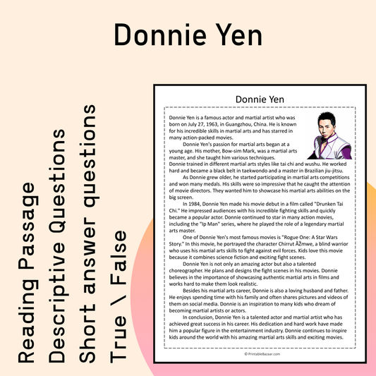 Donnie Yen | Reading Comprehension Passage Printable Activity