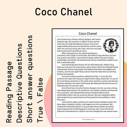 Coco Chanel | Reading Comprehension Passage Printable Activity