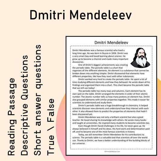 Dmitri Mendeleev | Reading Comprehension Passage Printable Activity