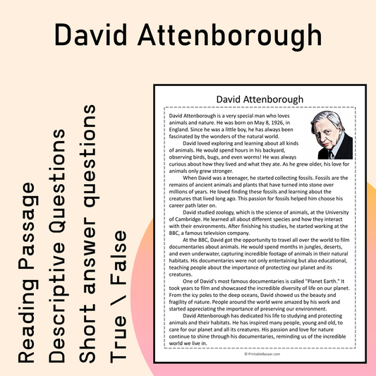 David Attenborough | Reading Comprehension Passage Printable Activity