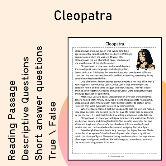 Cleopatra | Reading Comprehension Passage Printable Activity