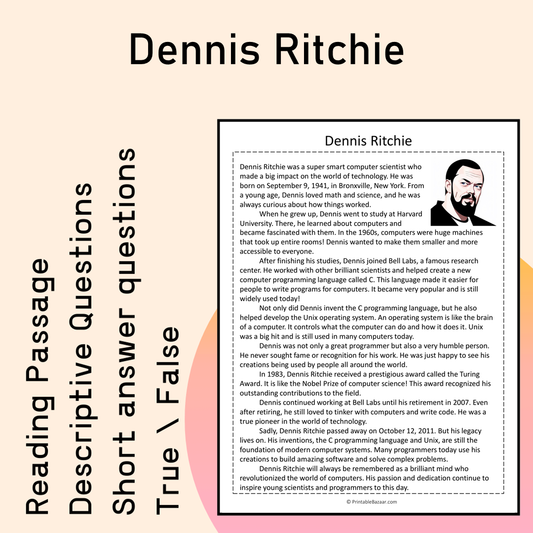 Dennis Ritchie | Reading Comprehension Passage Printable Activity