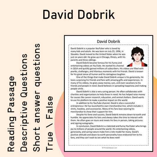 David Dobrik | Reading Comprehension Passage Printable Activity