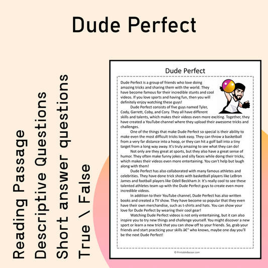 Dude Perfect | Reading Comprehension Passage Printable Activity