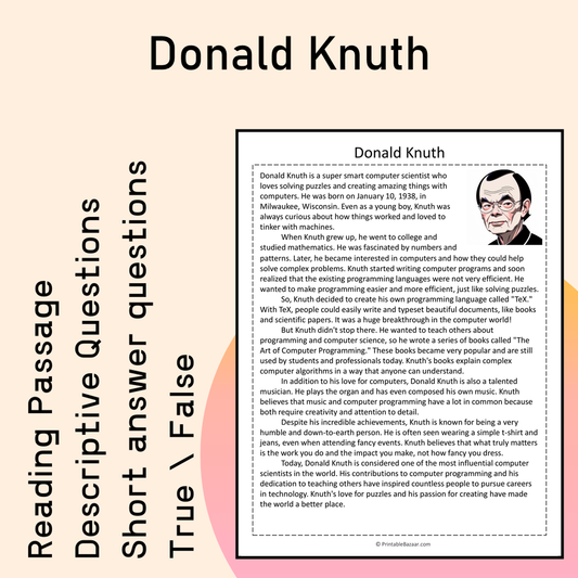 Donald Knuth | Reading Comprehension Passage Printable Activity
