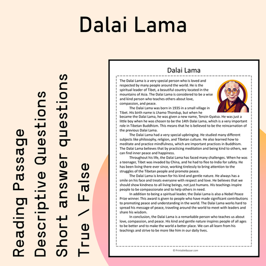 Dalai Lama | Reading Comprehension Passage Printable Activity