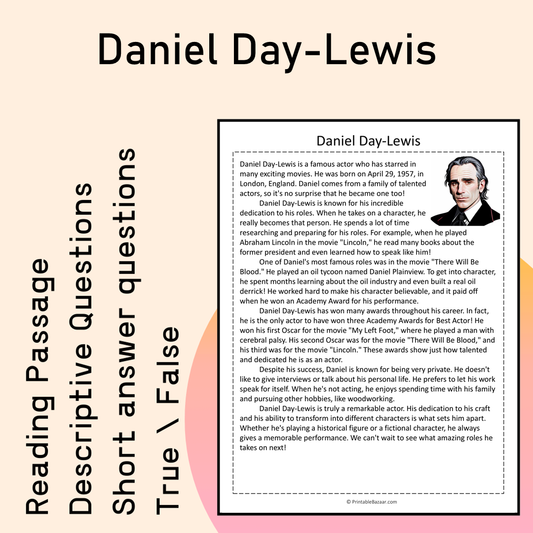 Daniel Day-Lewis | Reading Comprehension Passage Printable Activity