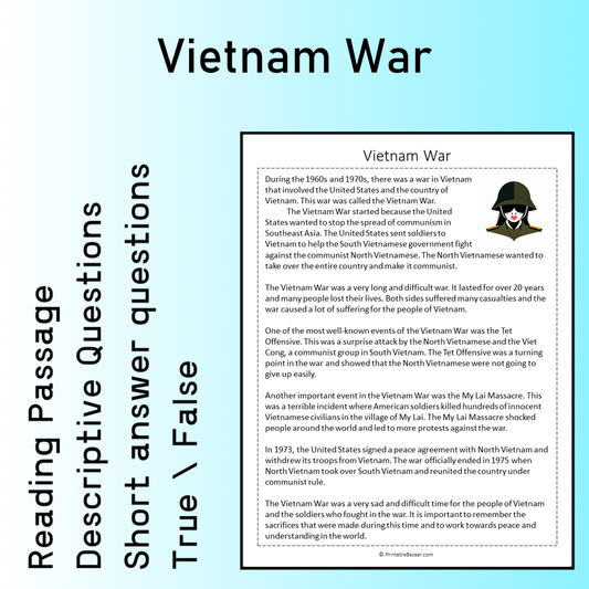 Vietnam War | Reading Comprehension Passage Printable Worksheet