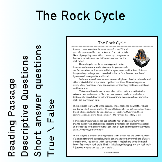 The Rock Cycle | Reading Comprehension Passage Printable Worksheet