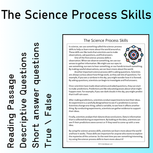 The Science Process Skills | Reading Comprehension Passage Printable Worksheet