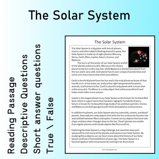 The Solar System | Reading Comprehension Passage Printable Worksheet