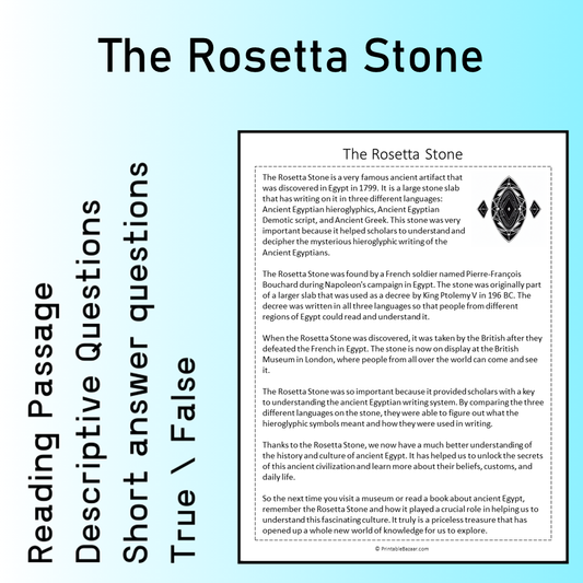 The Rosetta Stone | Reading Comprehension Passage Printable Worksheet