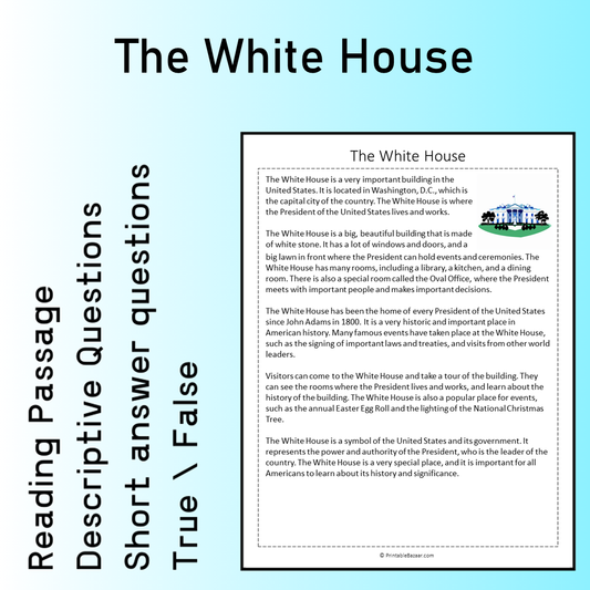 The White House | Reading Comprehension Passage Printable Worksheet