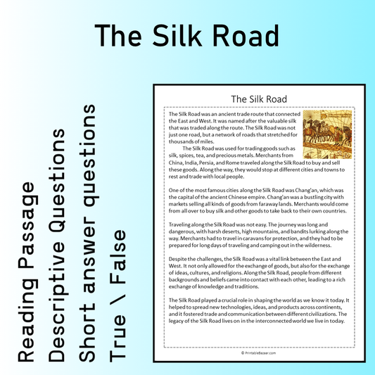 The Silk Road | Reading Comprehension Passage Printable Worksheet