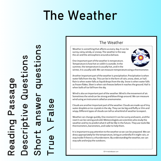 The Weather | Reading Comprehension Passage Printable Worksheet