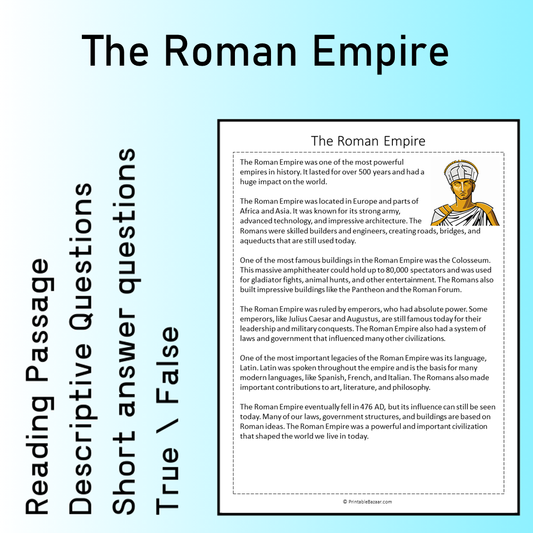 The Roman Empire | Reading Comprehension Passage Printable Worksheet