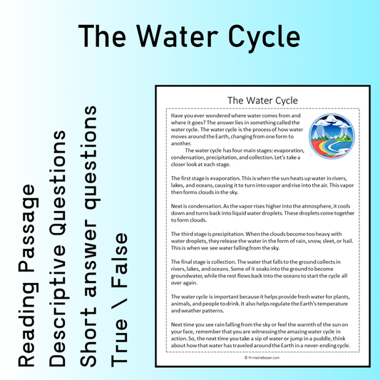 The Water Cycle | Reading Comprehension Passage Printable Worksheet