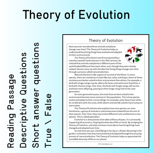 Theory of Evolution | Reading Comprehension Passage Printable Worksheet
