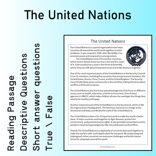 The United Nations | Reading Comprehension Passage Printable Worksheet