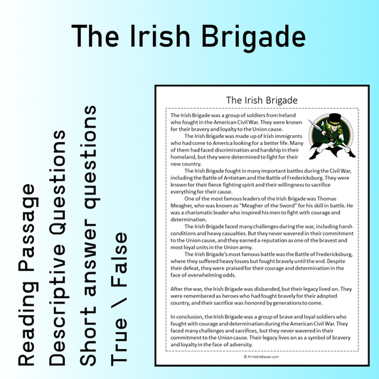 The Irish Brigade | Reading Comprehension Passage Printable Worksheet