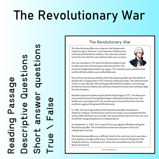 The Revolutionary War | Reading Comprehension Passage Printable Worksheet