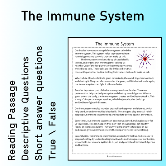 The Immune System | Reading Comprehension Passage Printable Worksheet