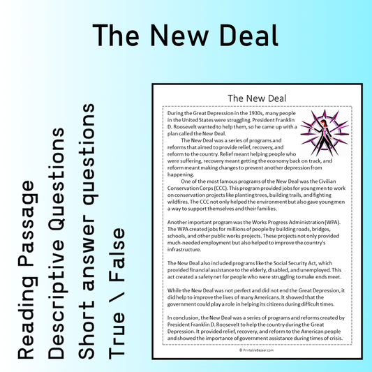 The New Deal | Reading Comprehension Passage Printable Worksheet