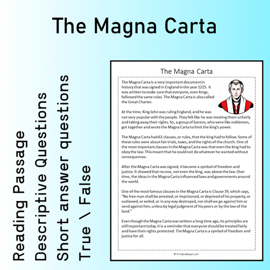 The Magna Carta | Reading Comprehension Passage Printable Worksheet