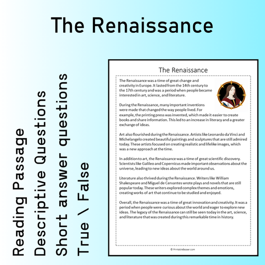 The Renaissance | Reading Comprehension Passage Printable Worksheet