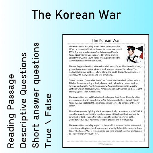 The Korean War | Reading Comprehension Passage Printable Worksheet