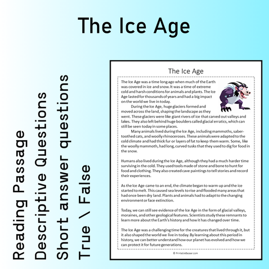 The Ice Age | Reading Comprehension Passage Printable Worksheet